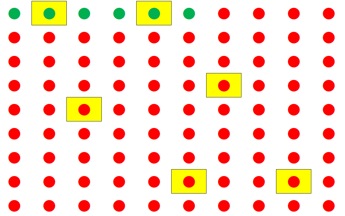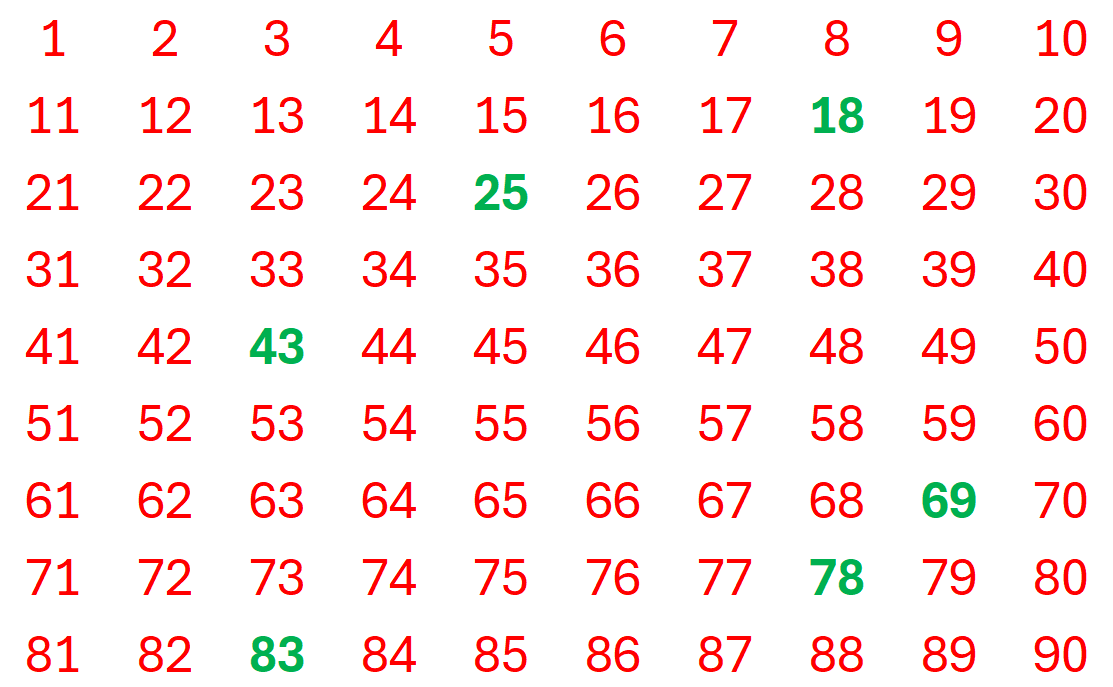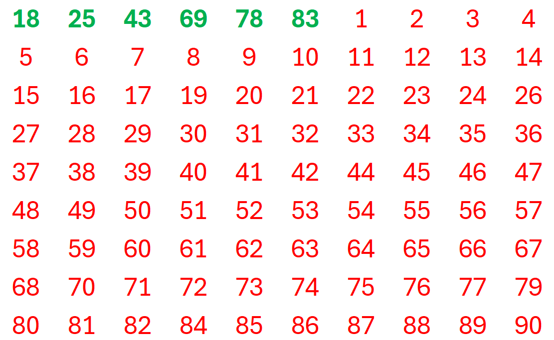 Dell’intera tabella di numeri, ne vengono estratti 6, colorati in verde. Tutti gli altri sono numeri perdenti, e vengono colorati in rosso.