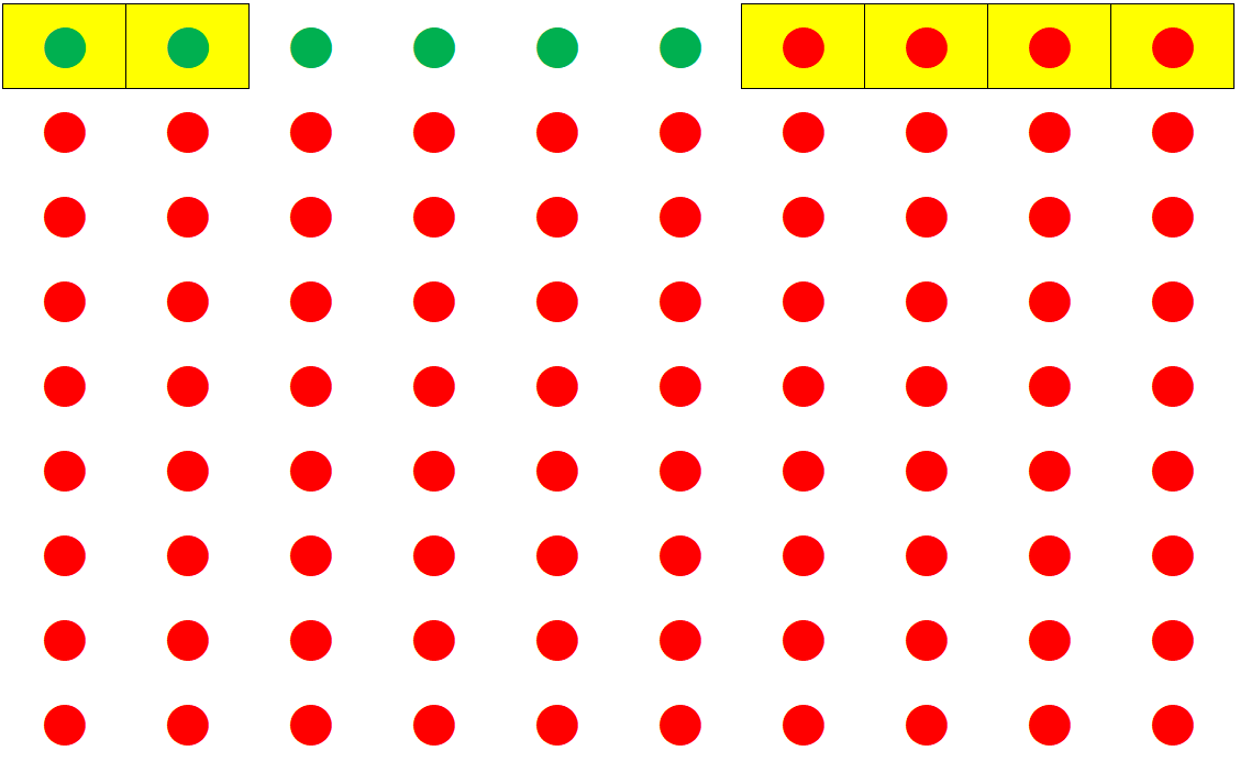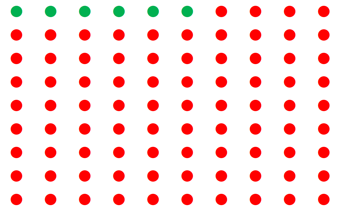 Per indovinare 2 numeri, significa che dobbiamo pescare 2 pallini verdi e 4 pallini rossi. La situazione potrebbe essere questa: